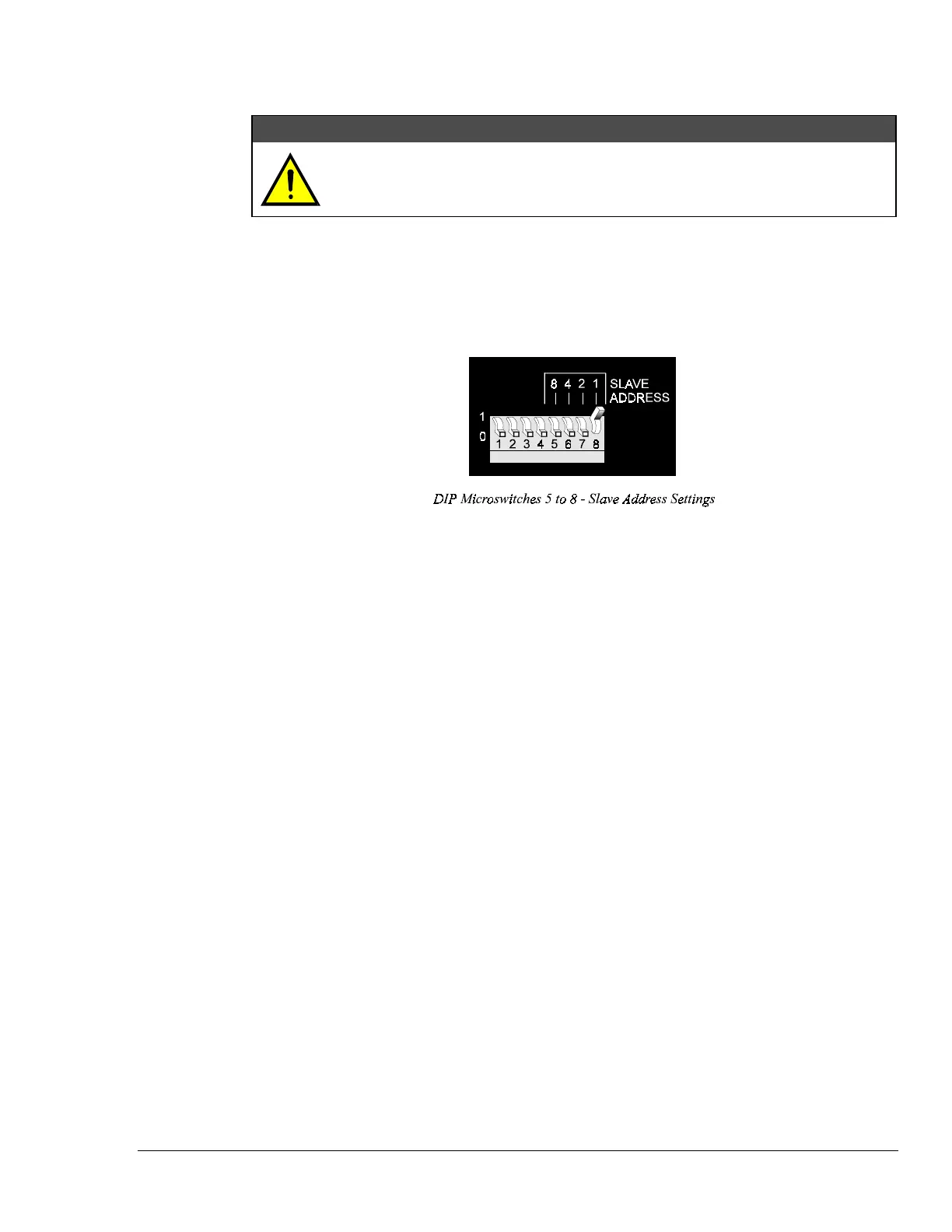 With all four microswitches 5, 6, 7 and 8 in the up position, this setting indicates a slave address of 15