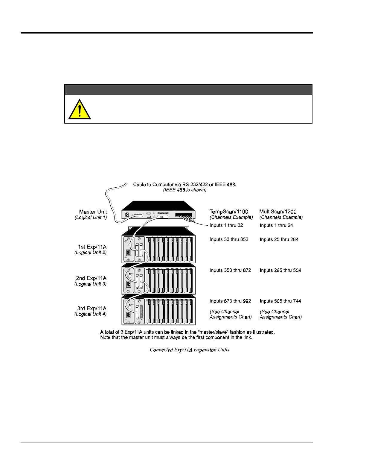 Up to three Exp/11A expansion units can be connected to the TempScan/1100 or MultiScan/1200