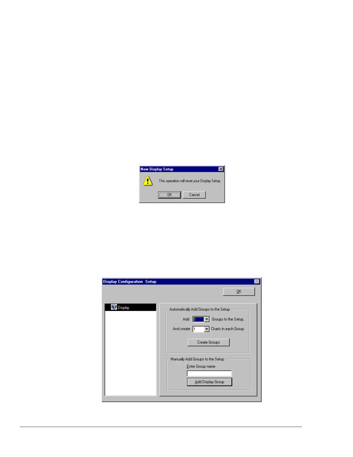 3. Click on the Manual Chart Creation button. The Display Configuration Setup box appears. Since