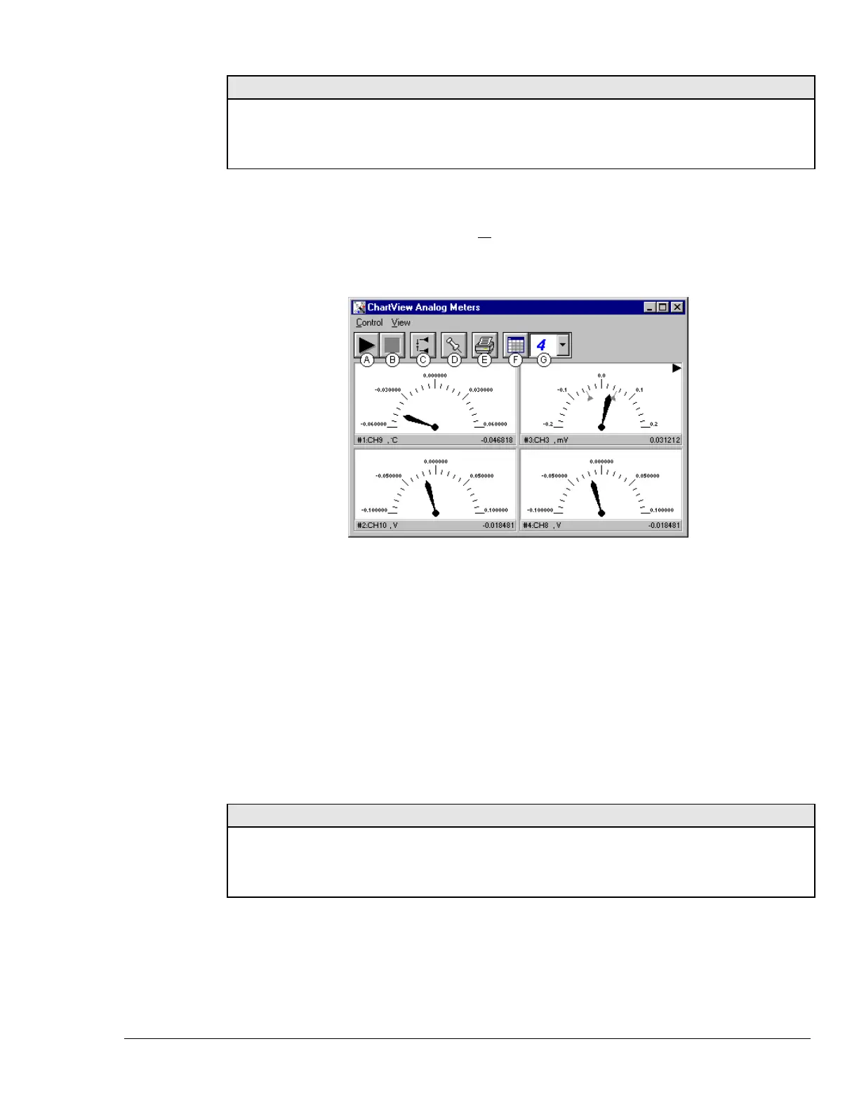 Selecting Analog Meters from ChartView’s Window pull-down menu brings up the Analog Meters