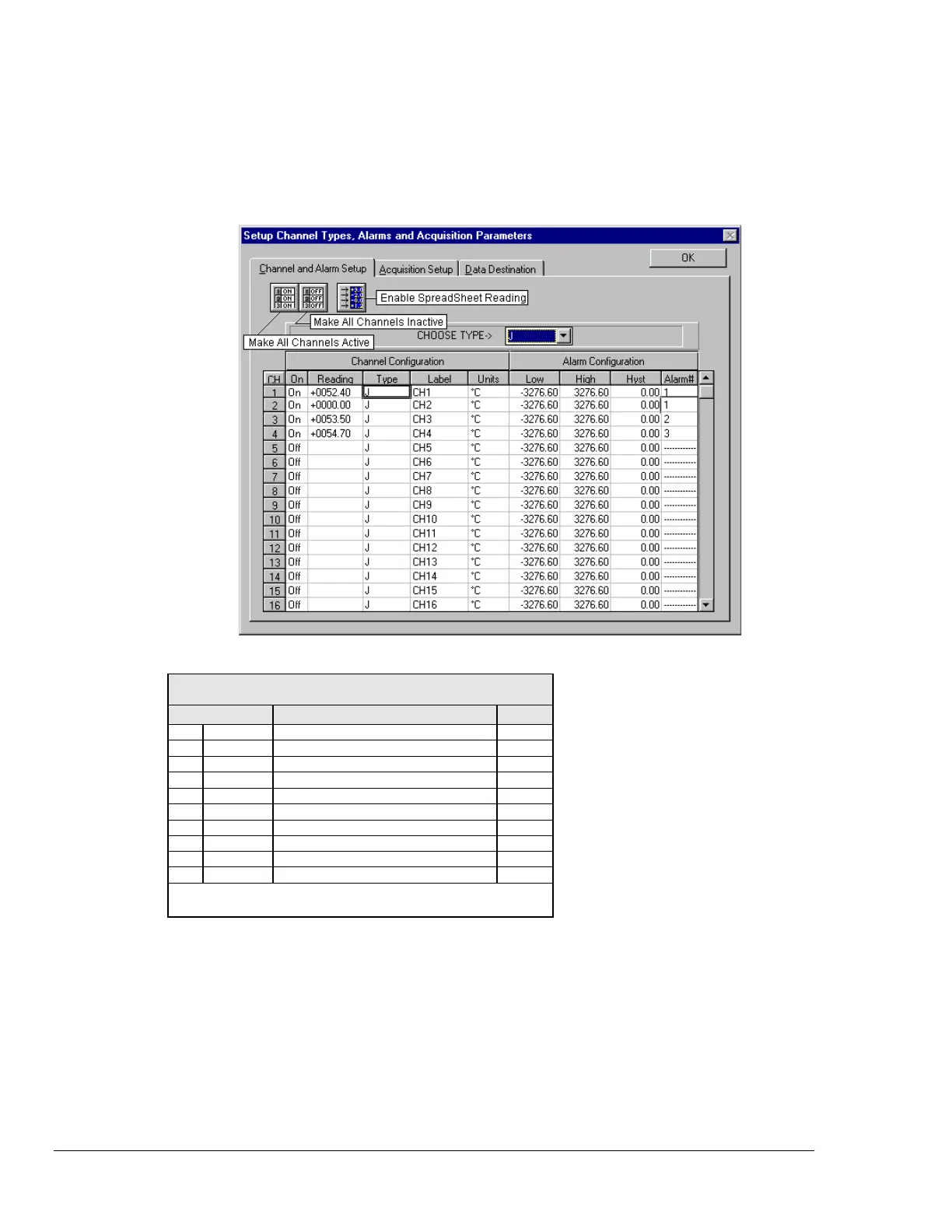 Channel and Alarm Setup Dialog Box