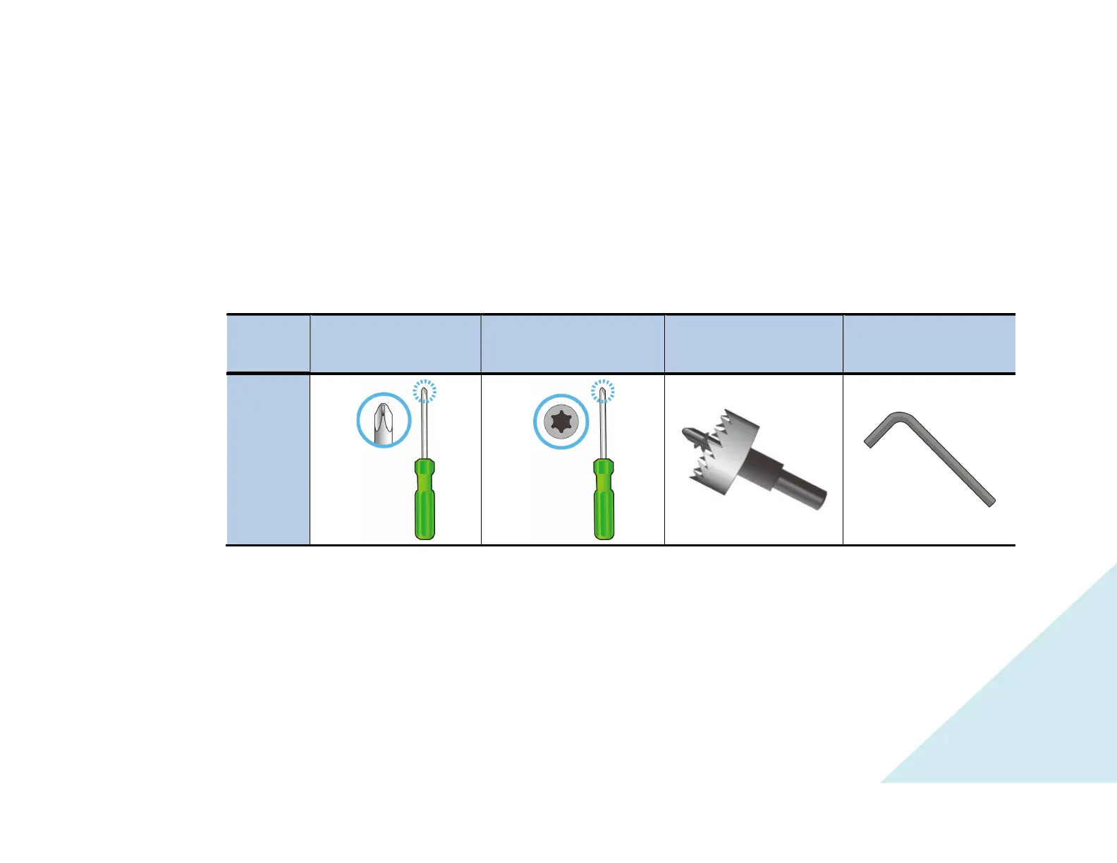 Tools and parts required for installation