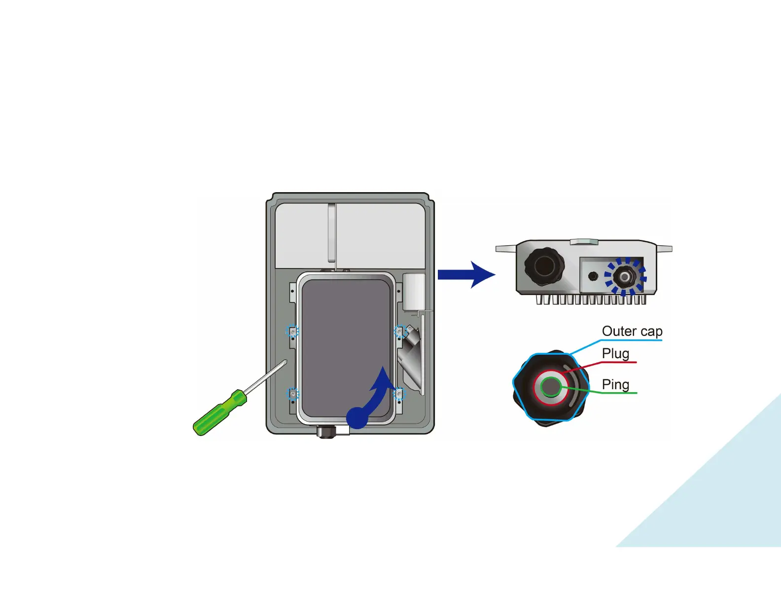 B. Using a M4 Phillips screwdriver, unscrew the four Phillips screws as shown below to release the