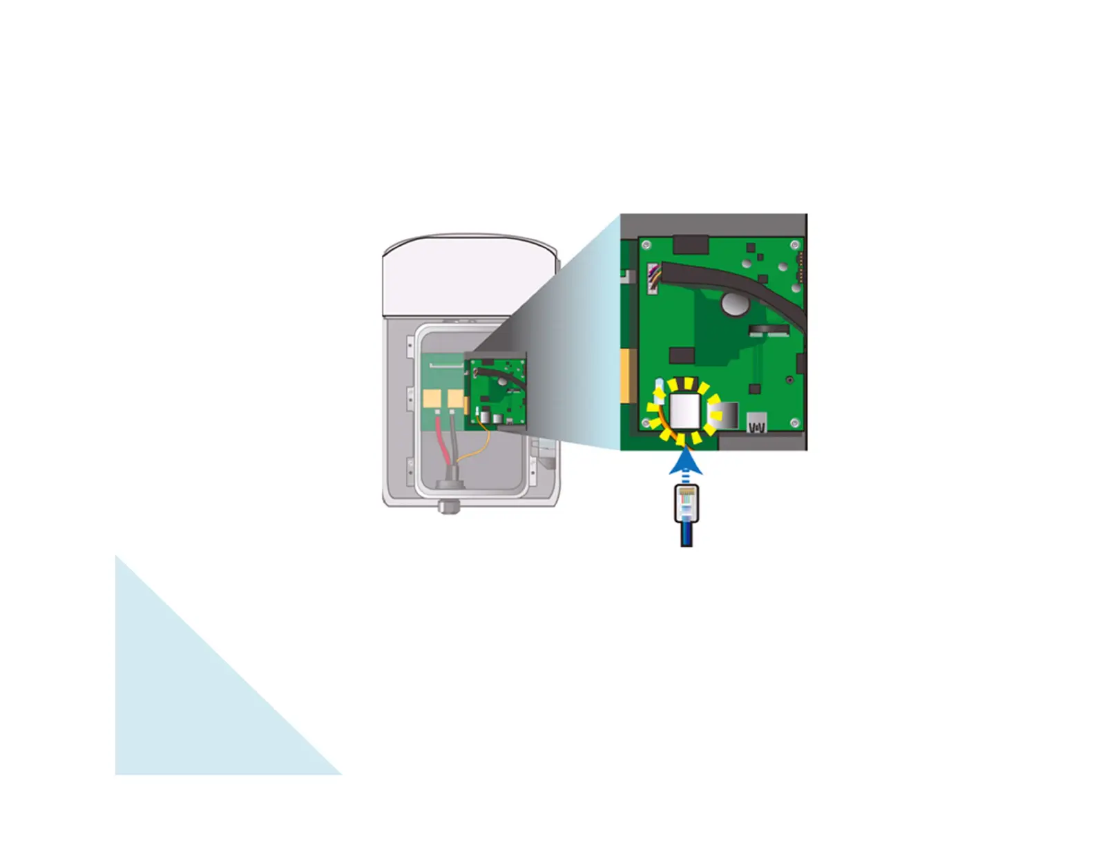 D. Locate the RJ45 port on the mainboard and plug the RJ45 header, as shown below.