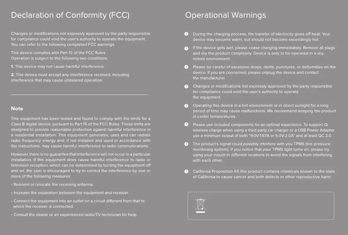 iOttie iTap 2 Wireless - Declaration of Conformity (FCC); Operational Warnings