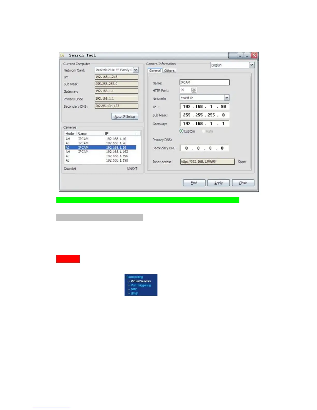 This is the most important step. Set port forwarding in router refer to the IP of your camera