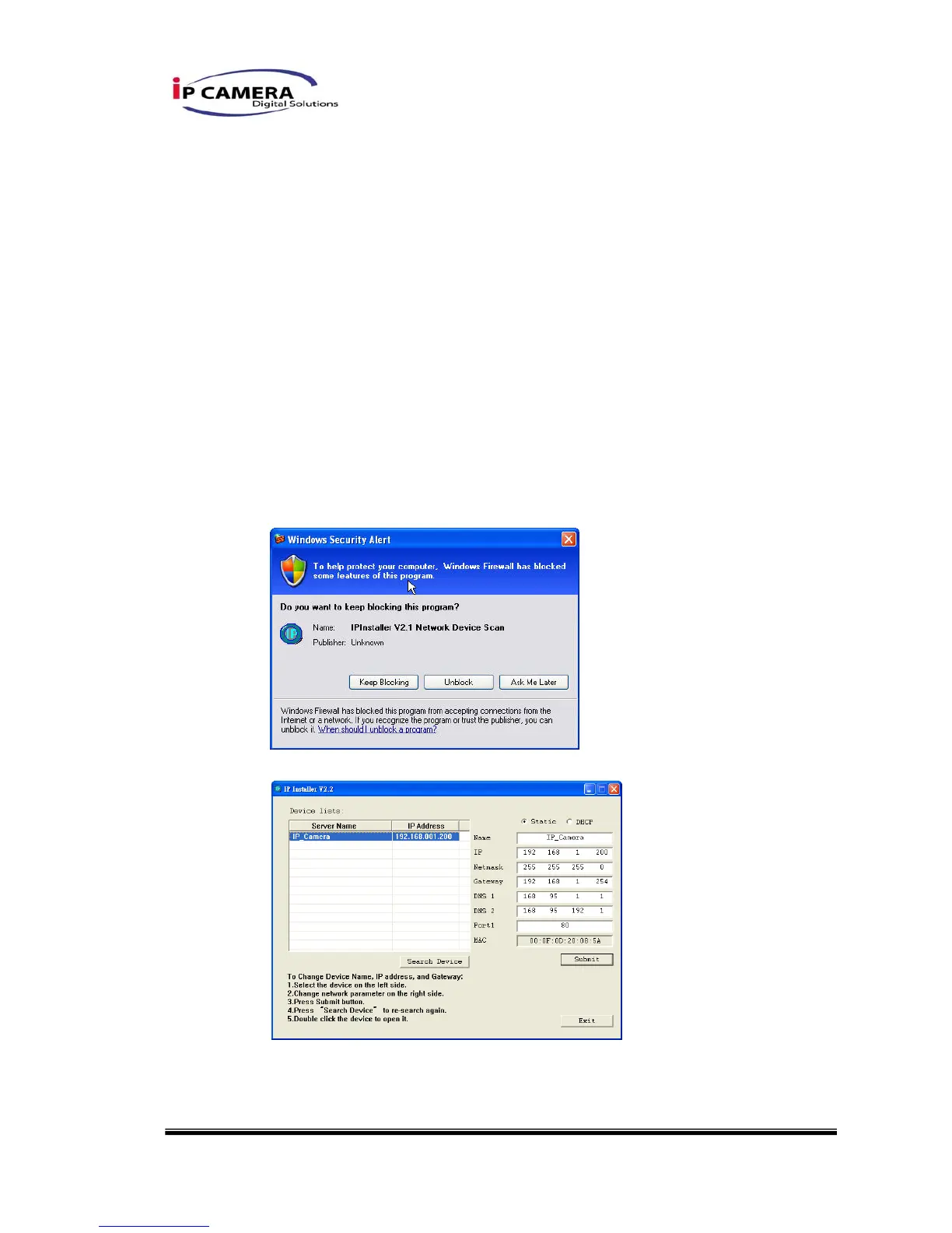 i. Use the software, “IP Installer” to assign the IP address of IP CAMERA.
