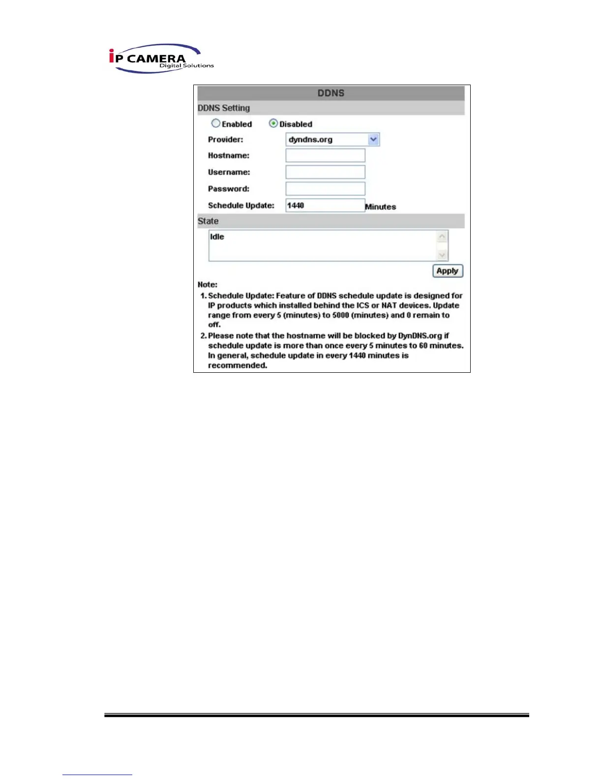 2. Key-in the DynDNS server name, user name, and password.