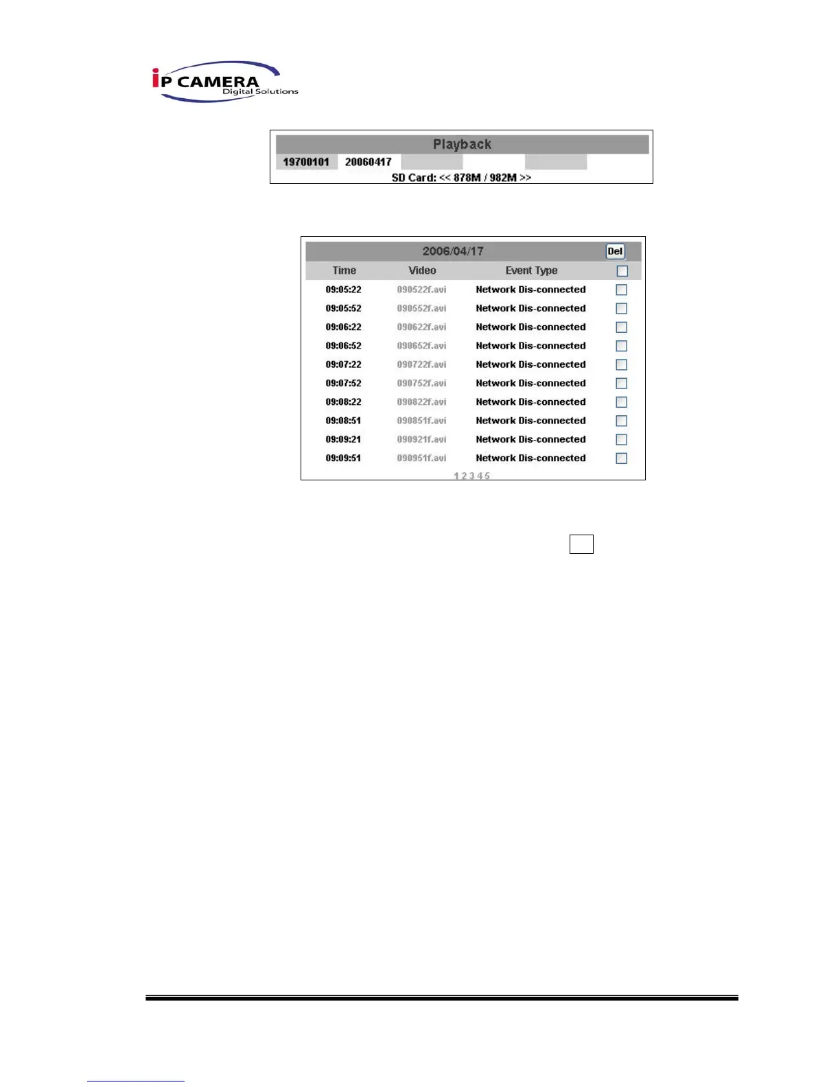 3. To delete the video, check it, then click Del. When the SD card