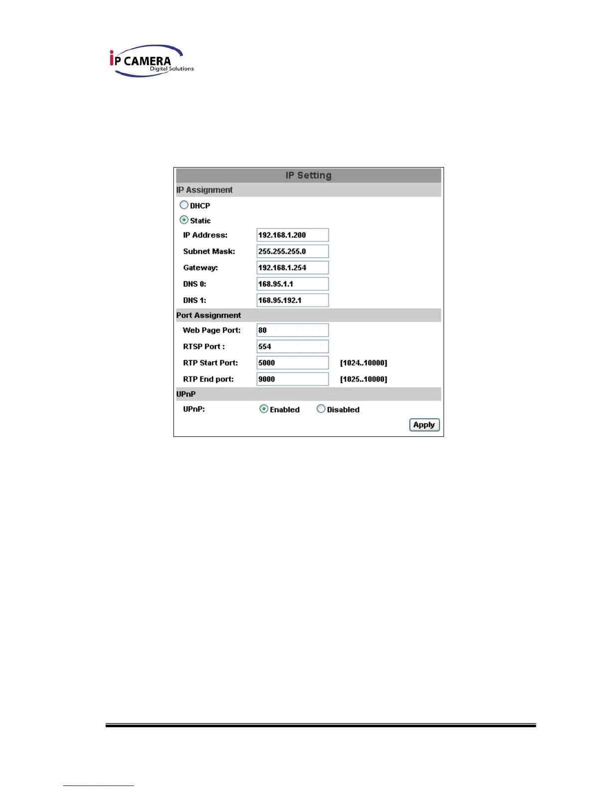 b. Static IP:Please type in IP address, subnet mask, gateway, and