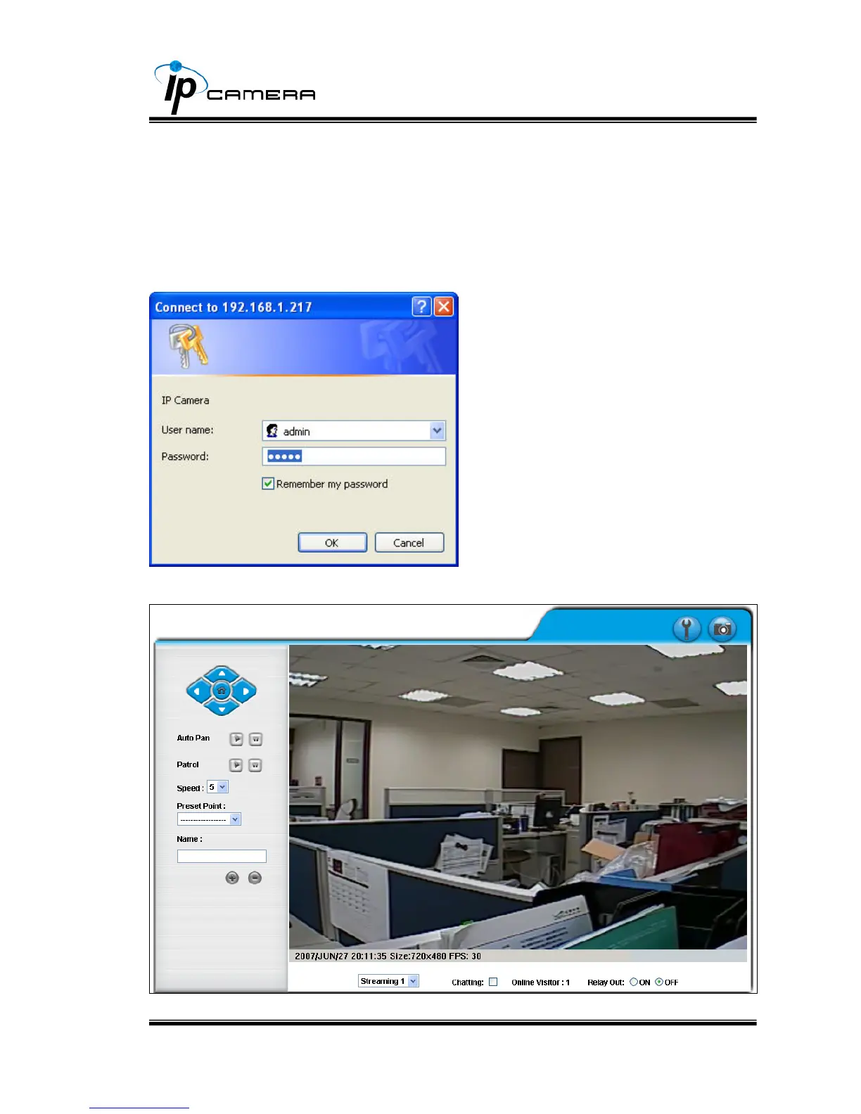 Start an IE browser, type the IP address of the IP camera in the address field. It will