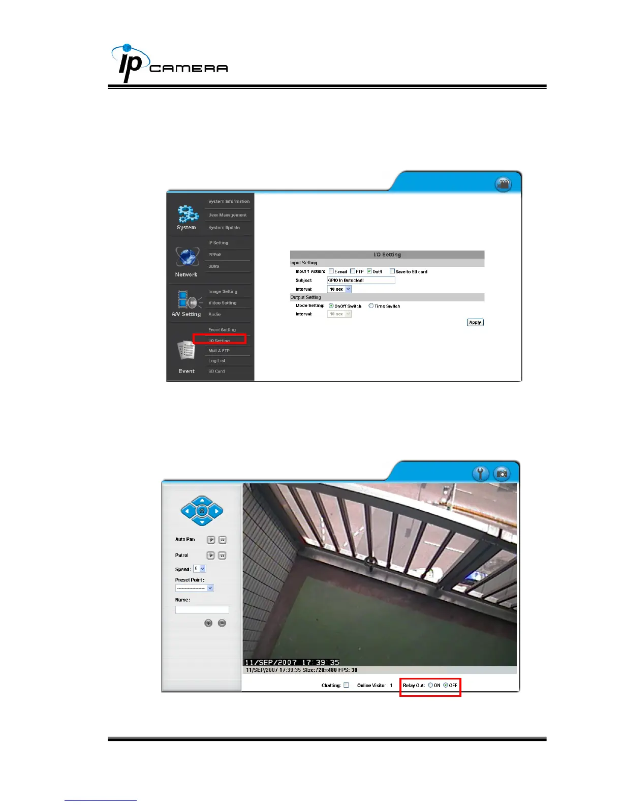 a. Click I/O Setting from the system setup page via IE, and check