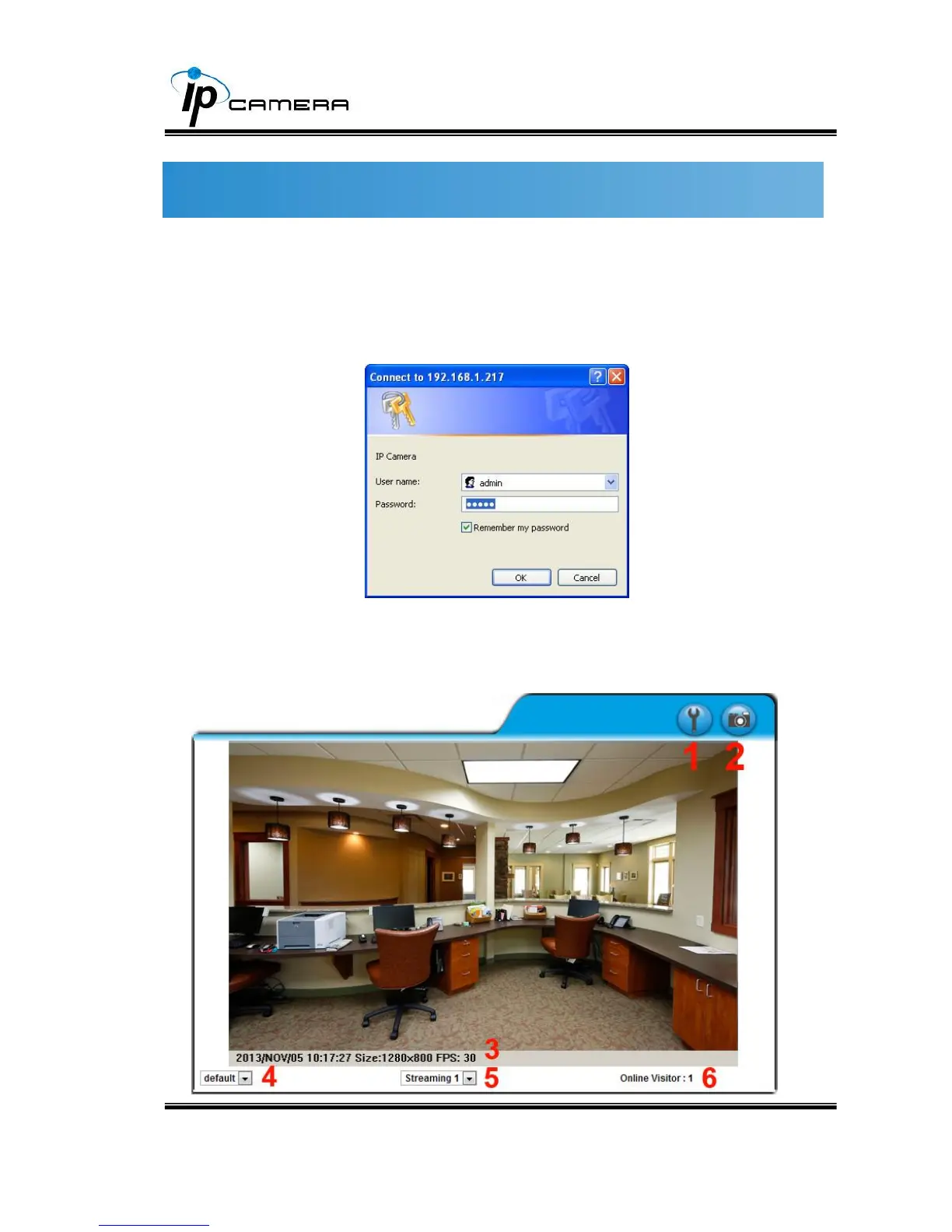 When the IP Camera is connected successfully, it shows the following program