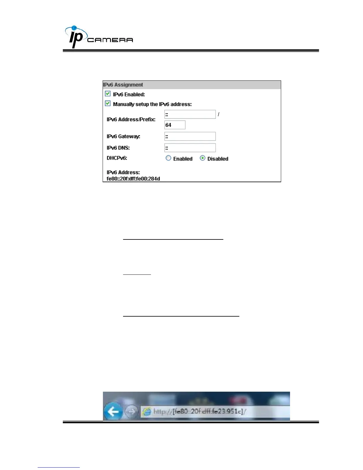 and key-in the [IPv6 address] in the address bar. The [ ] parentheses