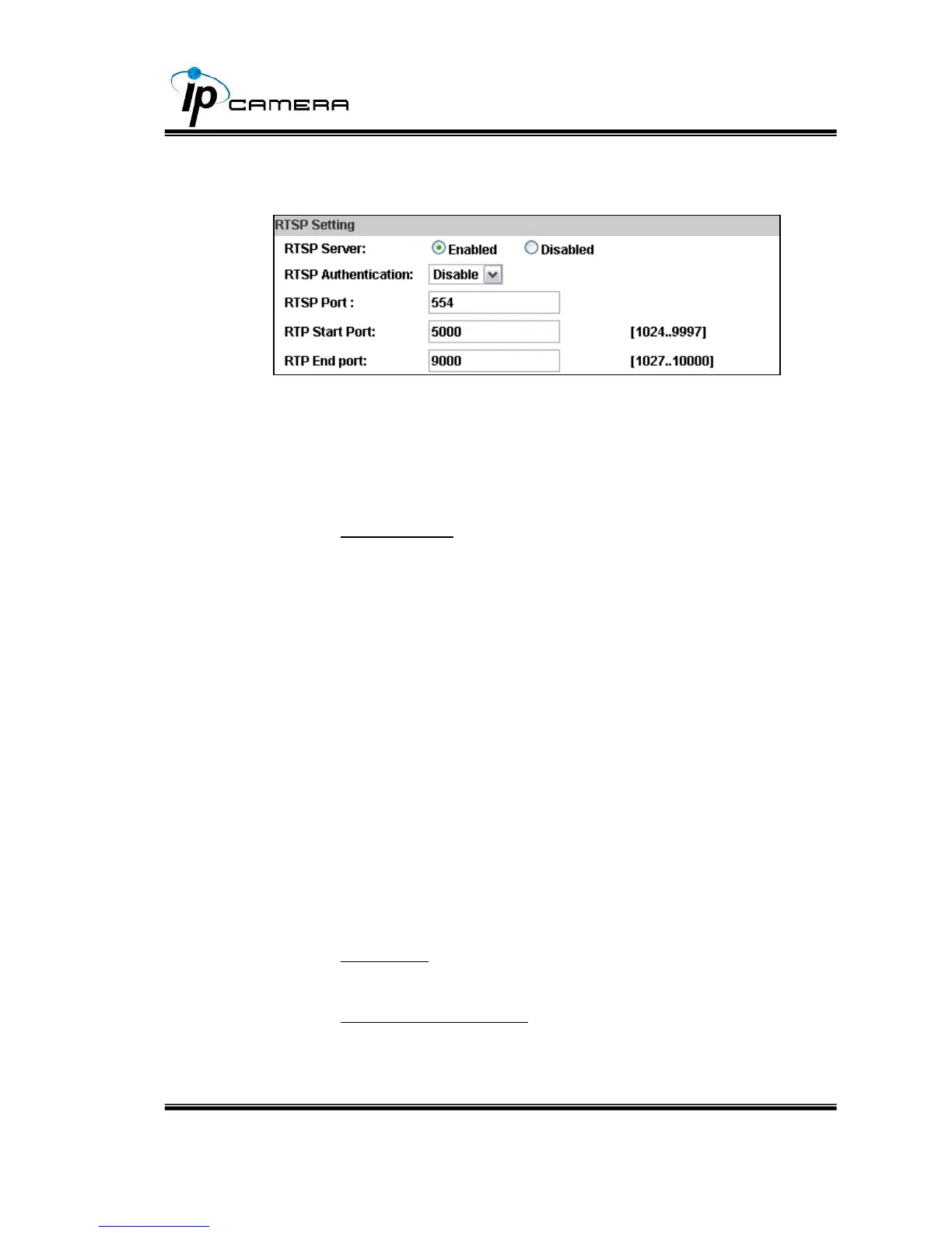 3. RTP Start and End Port: in RTSP mode, you may use TCP and