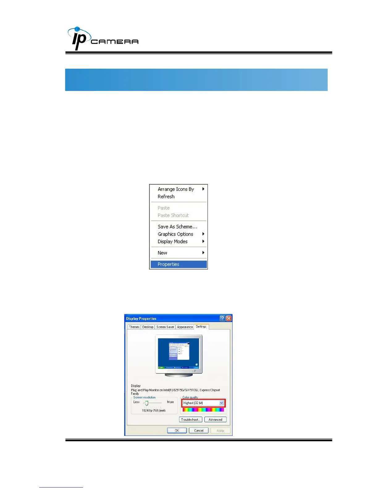 IP Camera VANDAL DOME IP CAMERA - Product Installation; Monitor Settings