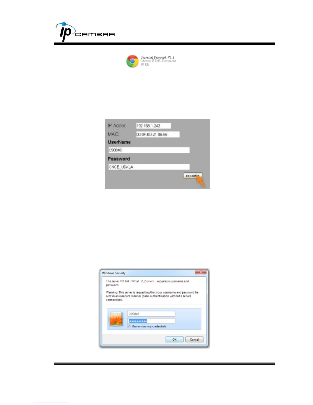 password is “CNCE_U6KLA”. Use them to log in the camera.