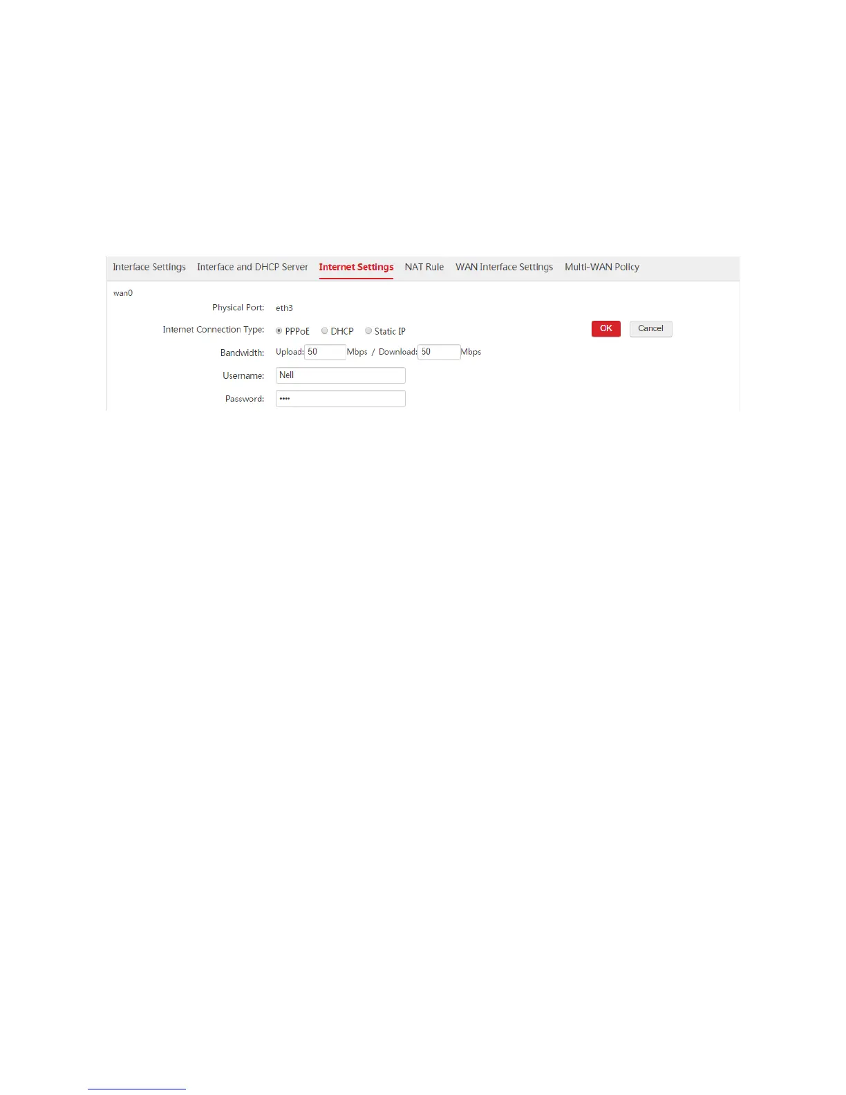 4. Username/Password: Enter the user name and password provided by your ISP. In this example, both