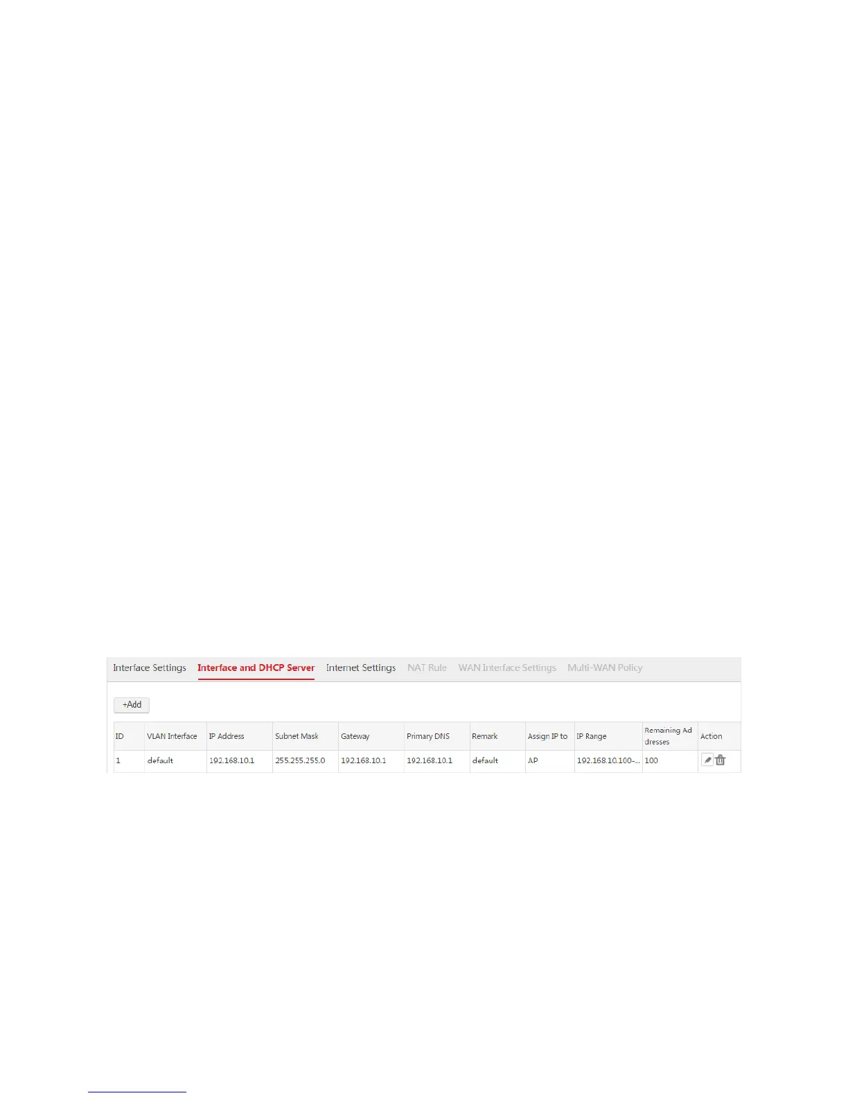 The AC provides one default interface and DHCP server rule. See the following figure.