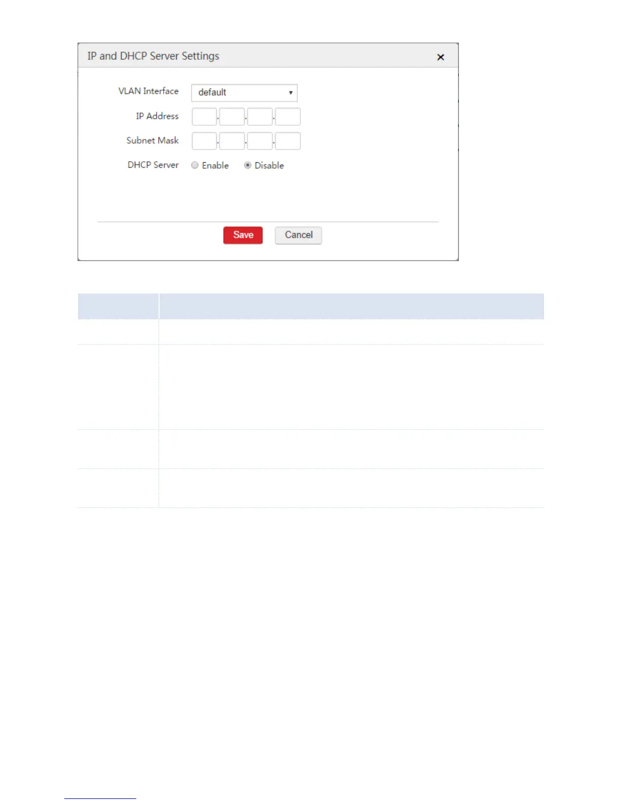 following parameters. When you disable the DHCP server, skip the following parameters.