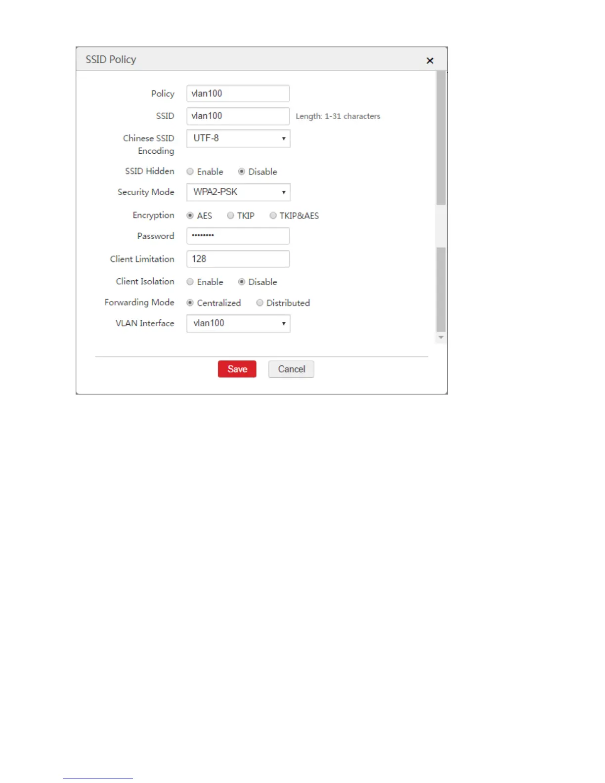 SSID Policy: Select the configured SSID policy from Step 3, which is "vlan100".