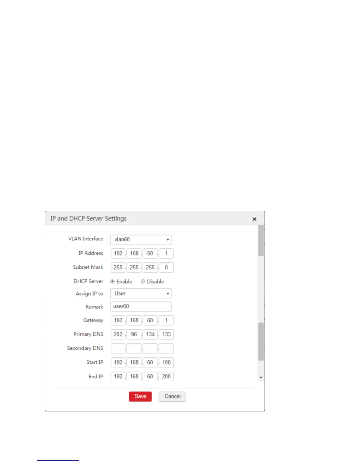 IP Address: Set an IP address for the VLAN interface, such as "192.168.60.1".