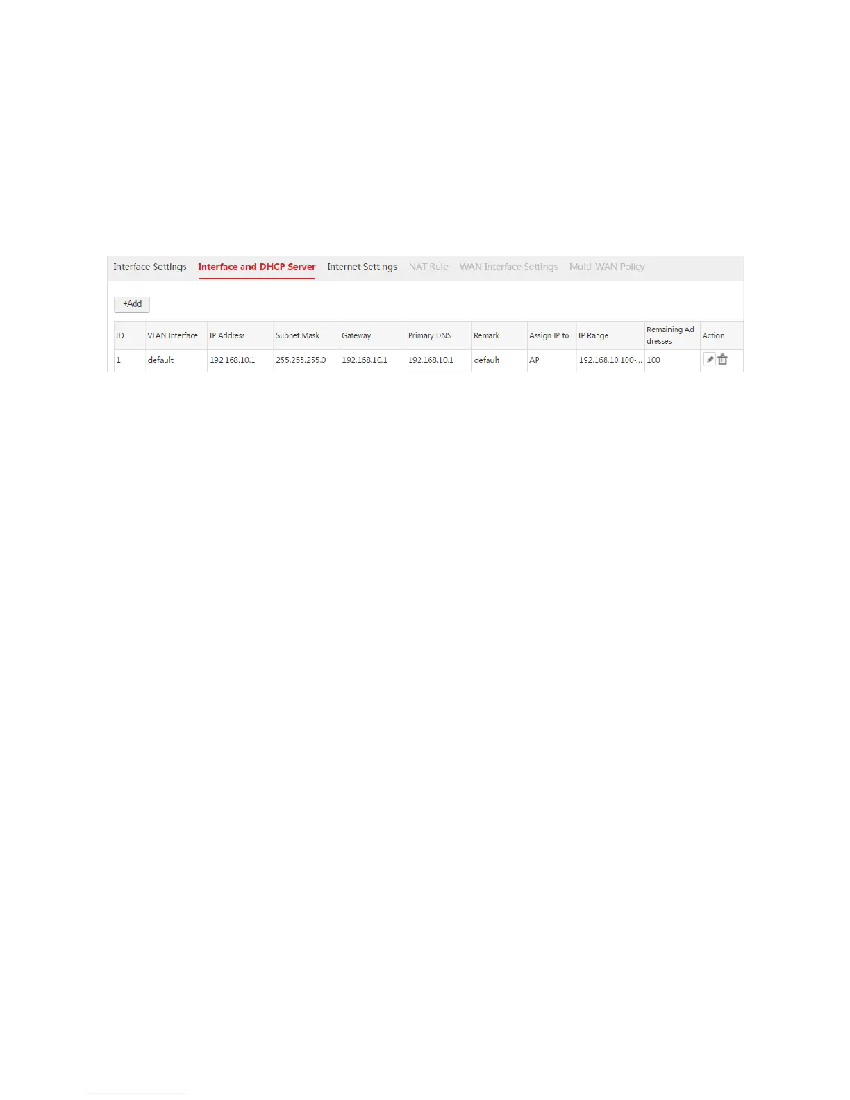 Choose Network Setting > Network Setting > Interface and DHCP Server and create four DHCP