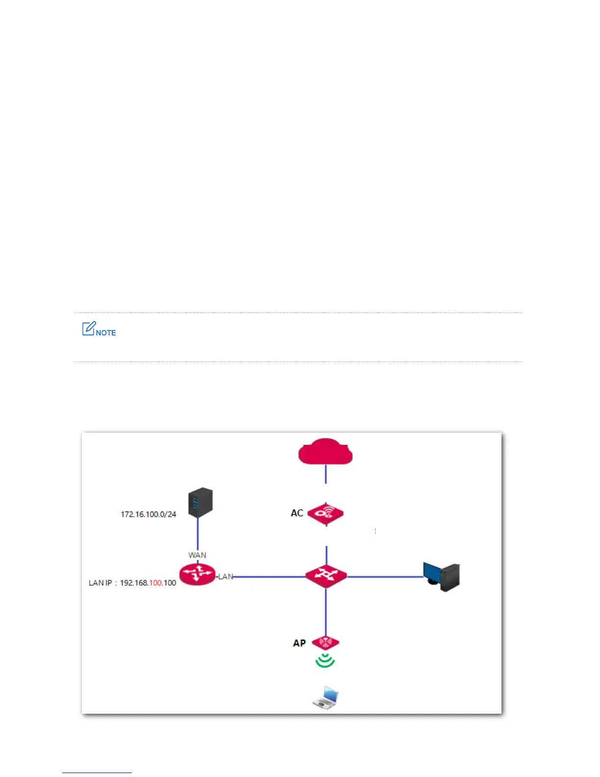 The AC is connected to two networks: the internet and the enterprise network. All users connected to the