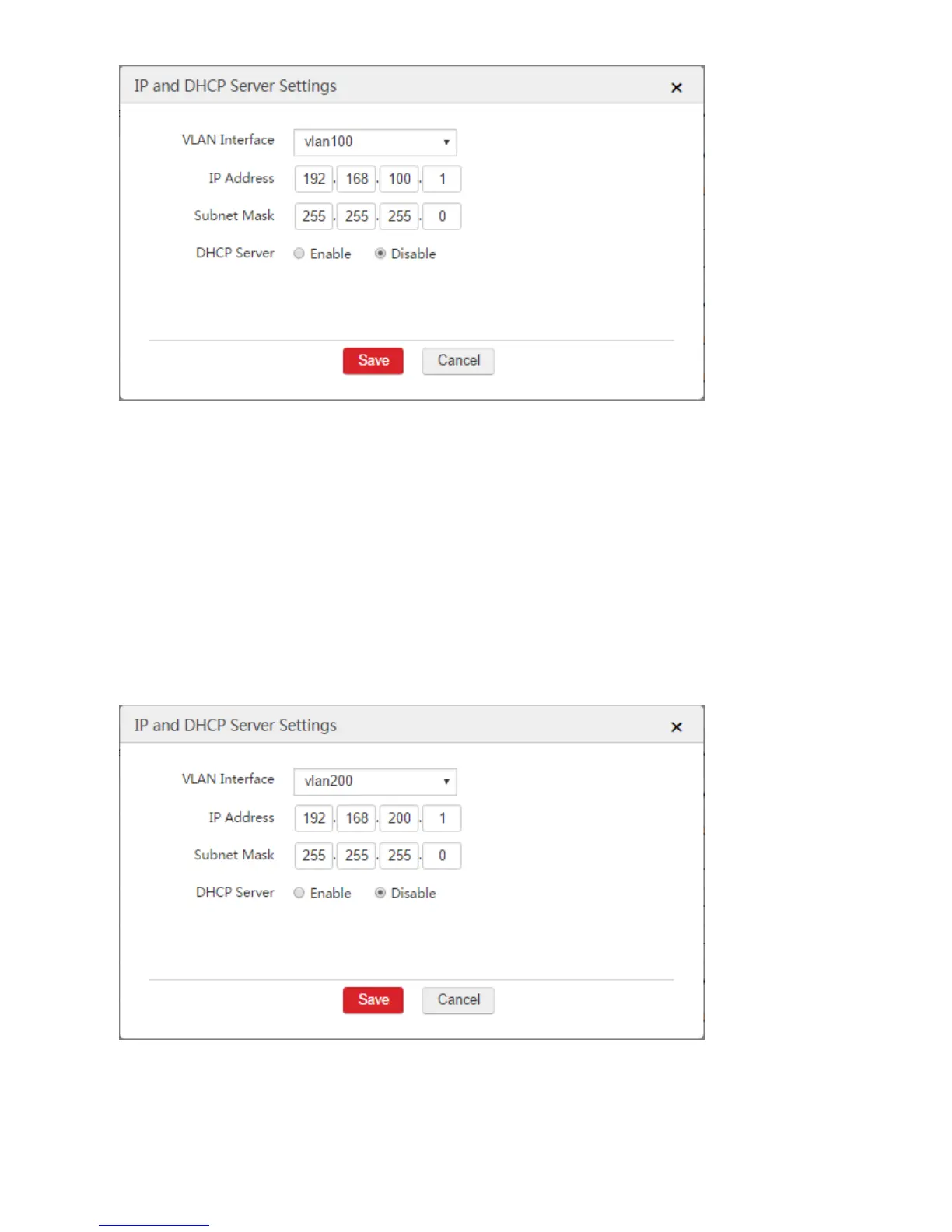 IP Address: Set an IP address for the VLAN interface that is on the network segment of the LAN