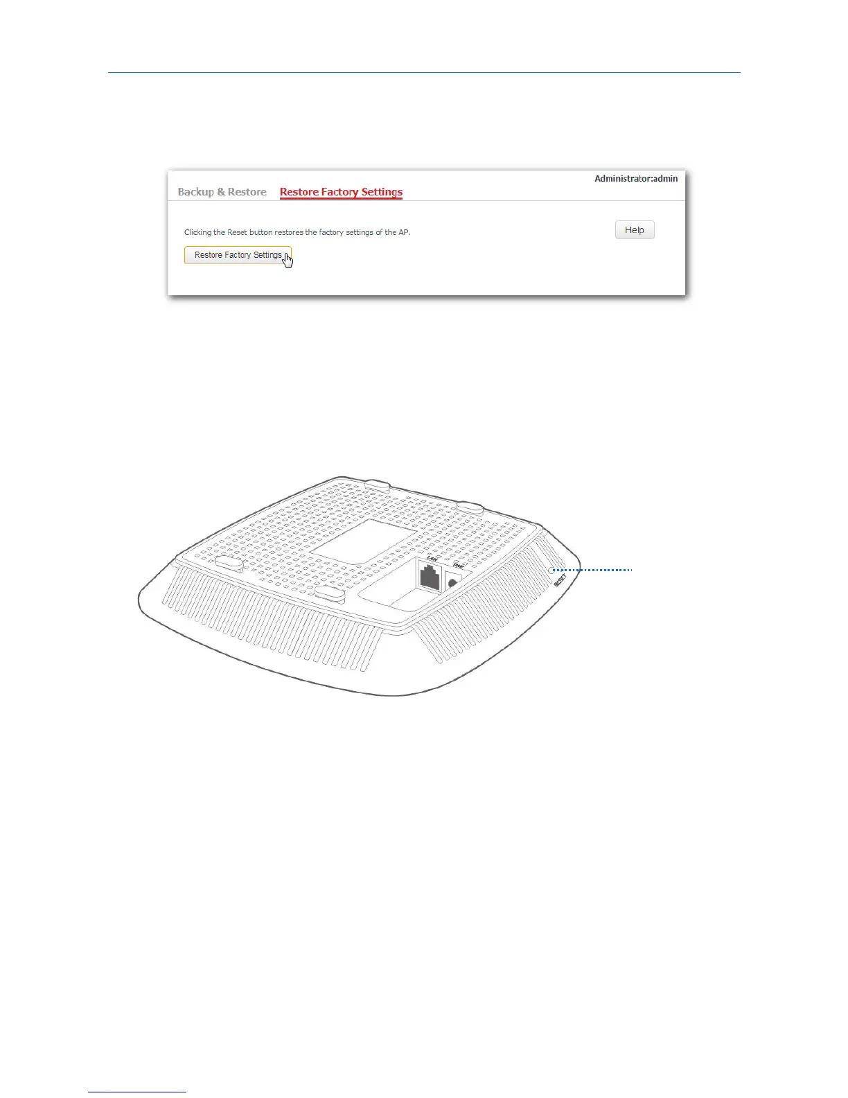 After the LED indicator blinks, hold down the RESET button for about 8 seconds. The AP is reset