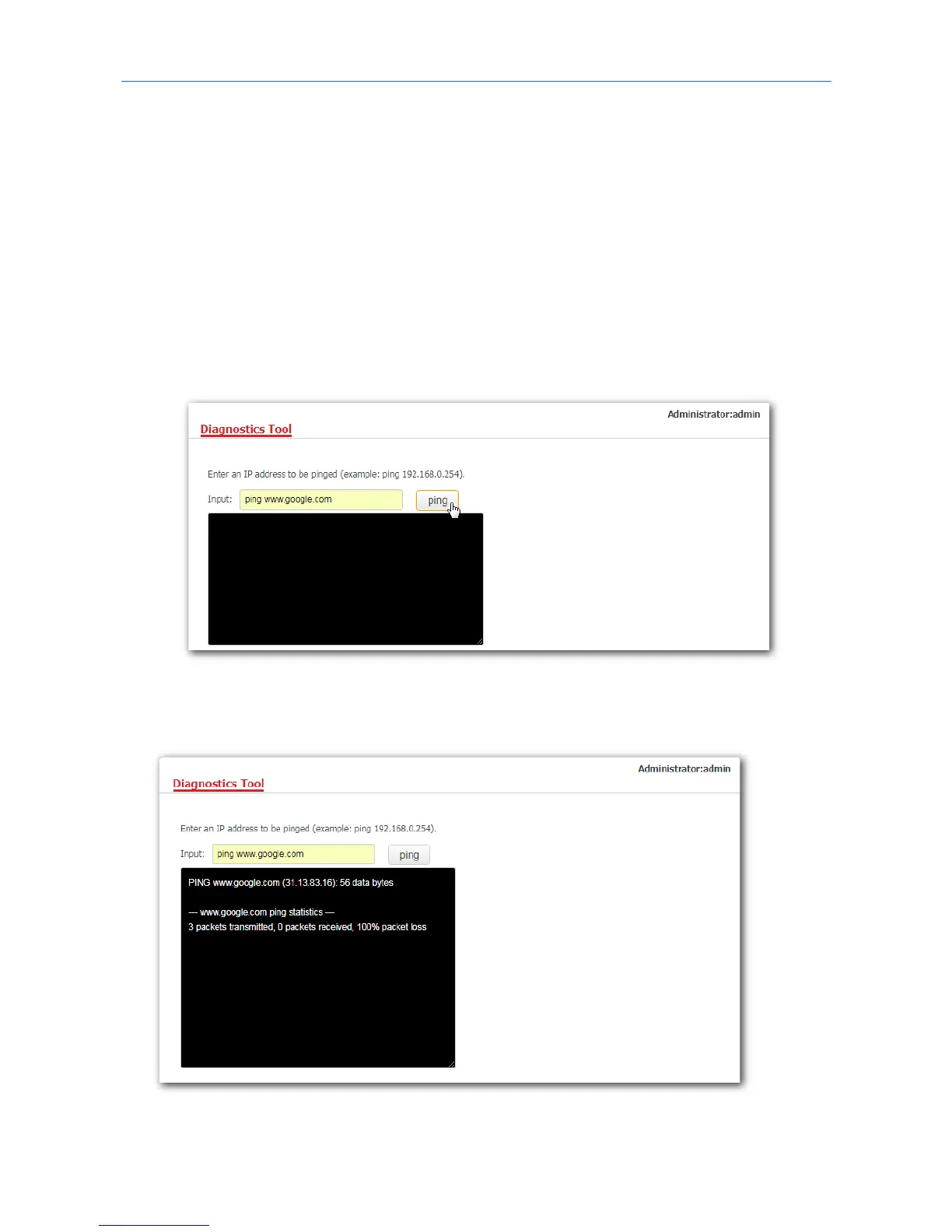 2. Enter the IP address or domain name to be pinged in the Input box, which is ping www.google.com in