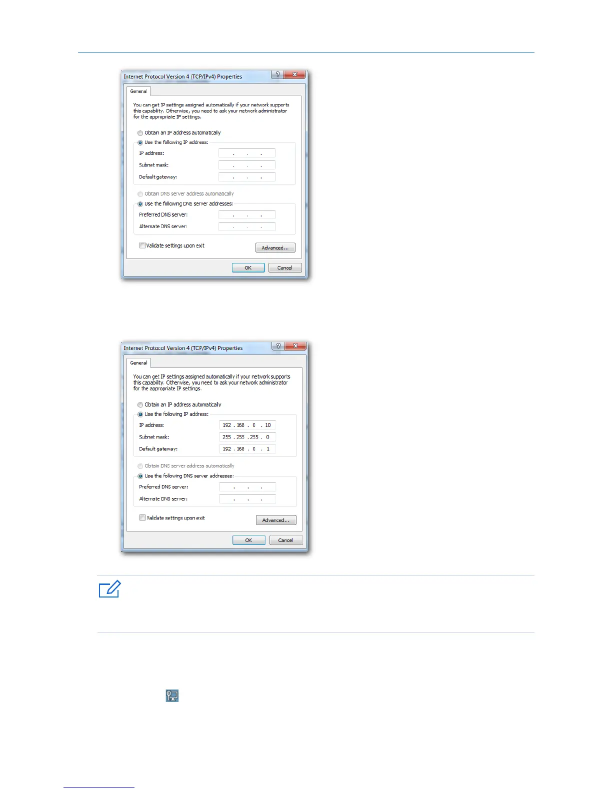 6. IP address, Subnet mask, Default gateway: Enter the static IP address, subnet mask and default