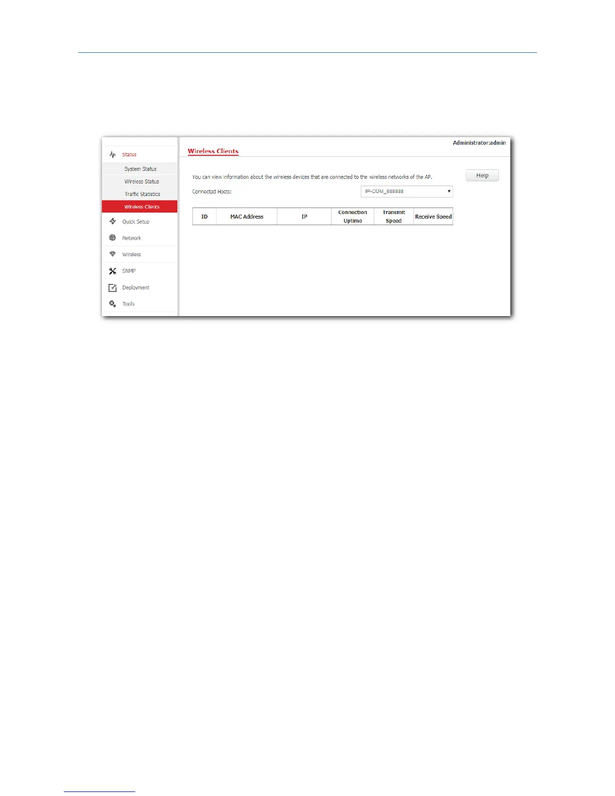 This page displays information about the wireless devices connected to AP’s WiFi networks. To access the