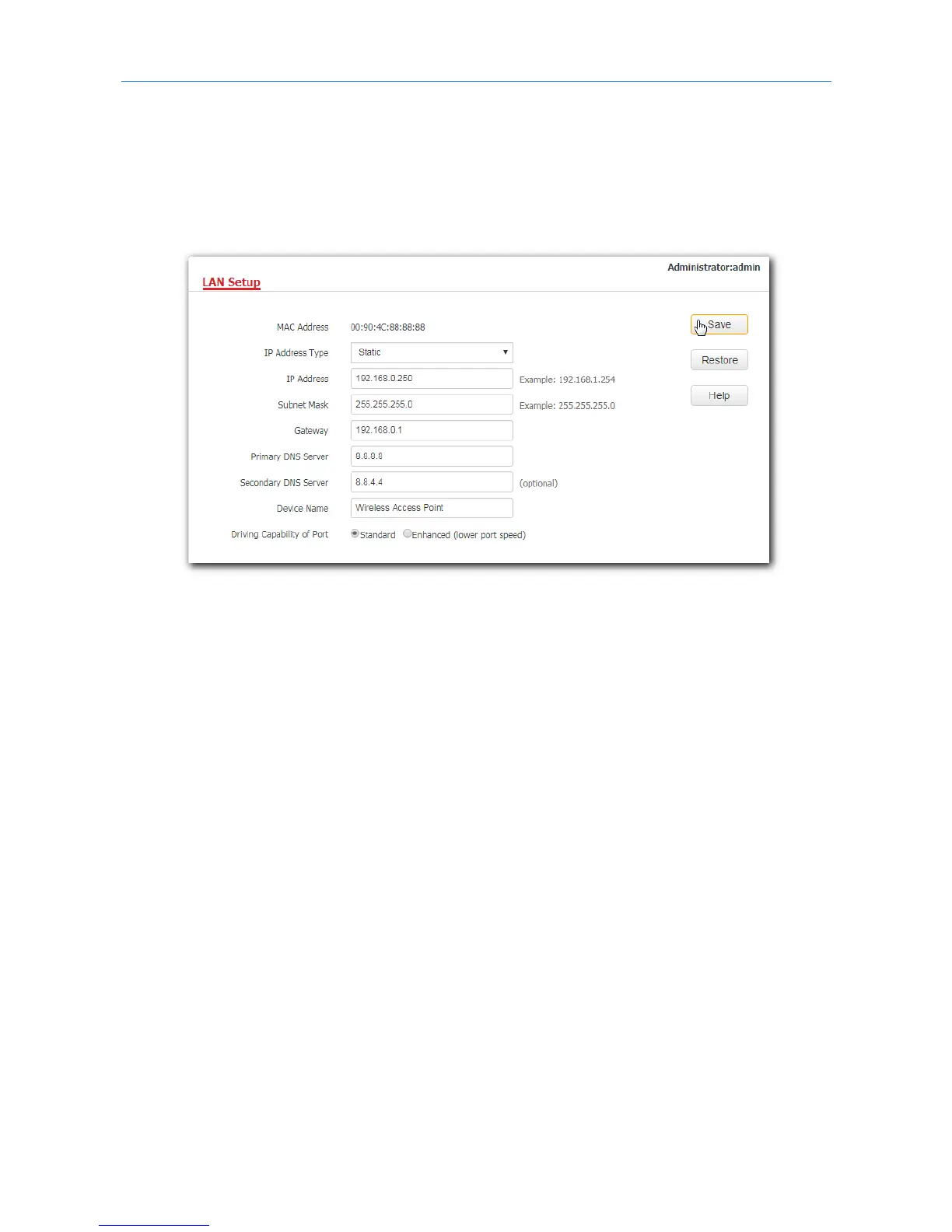 6. Primary DNS Server: Enter the primary DNS server for your AP, which is 8.8.8.8 in this example.