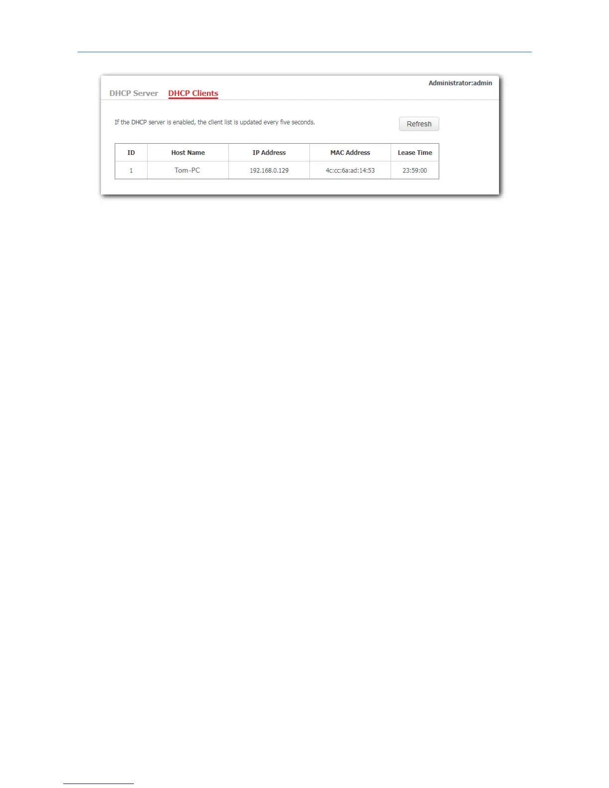 If the DHCP server is enabled, your AP will update its client list every five seconds. You can also click