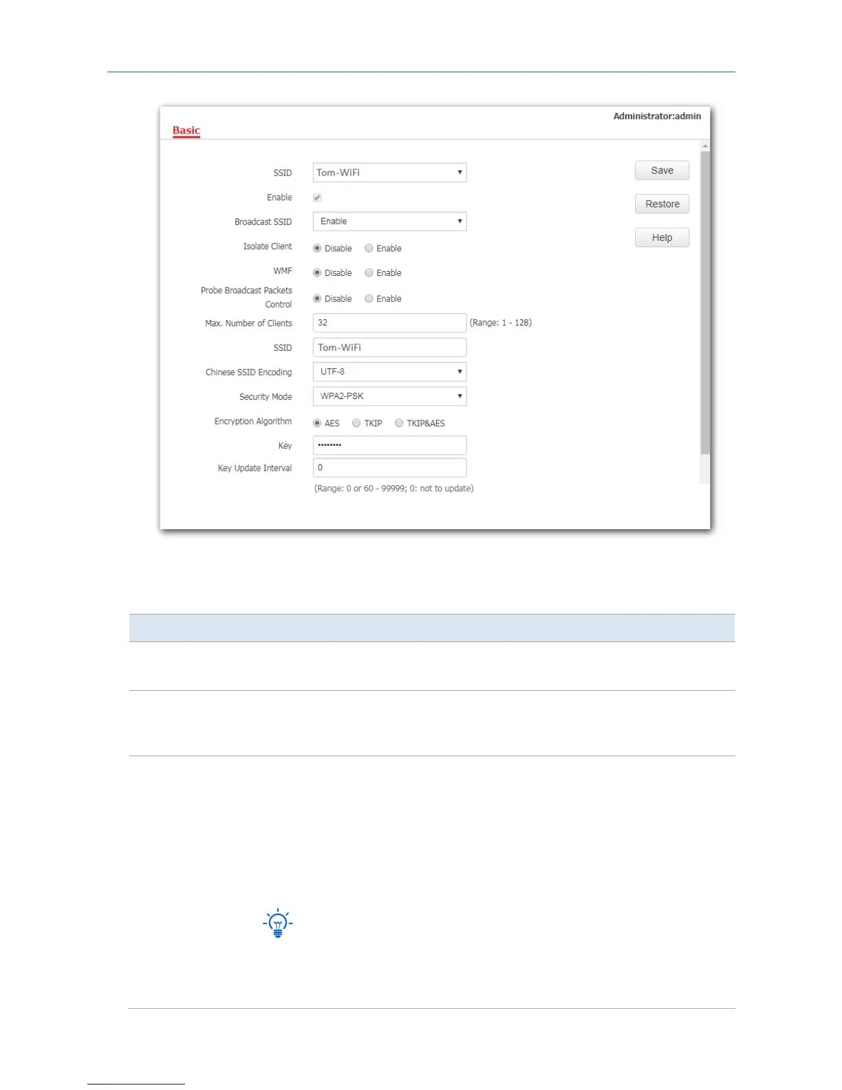 The AP supports four SSIDs and the first SSID displayed is the primary SSID.