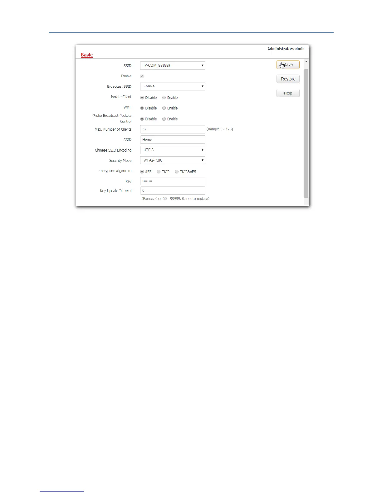 Wireless devices can connect to the WiFi network named Home using the password 87654321.