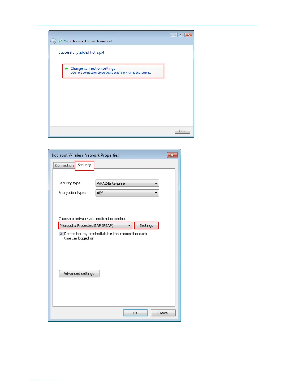 Click the Security tab, select Microsoft: Protected EAP (PEAP), and click Settings.
