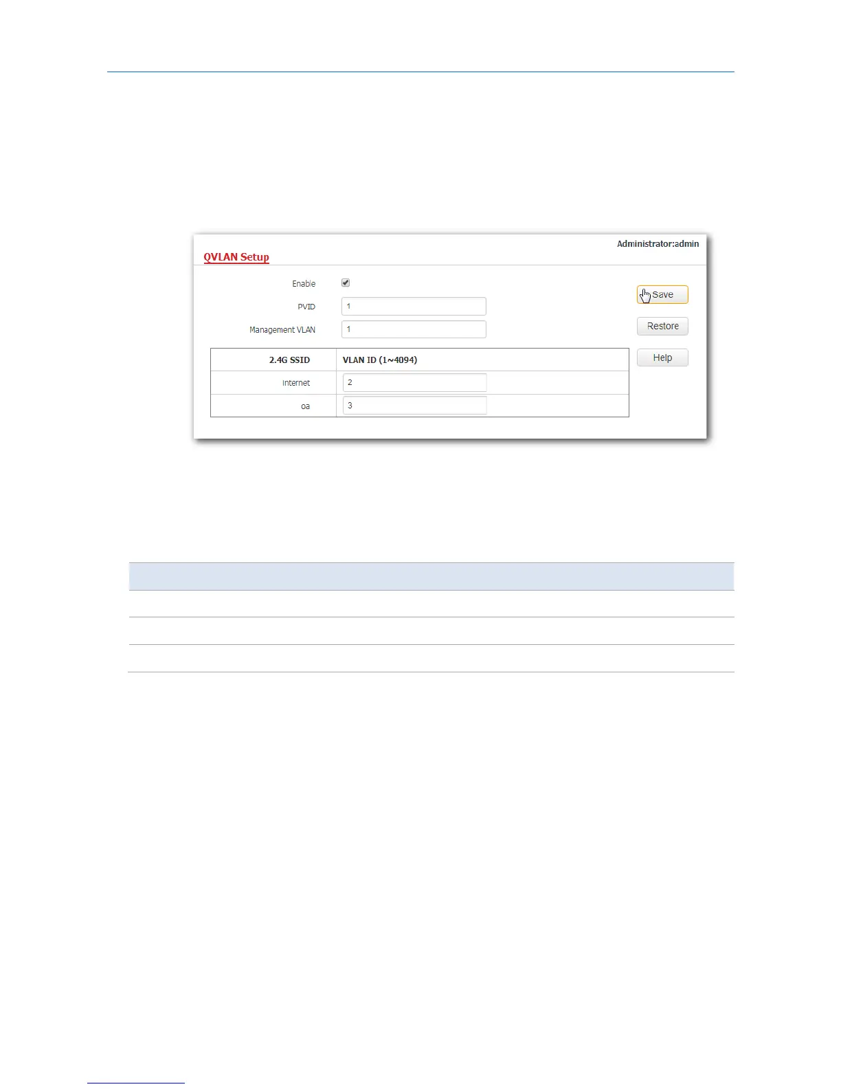 (1) Log in to the web UI of the AP and choose Wireless > QVLAN Setup.