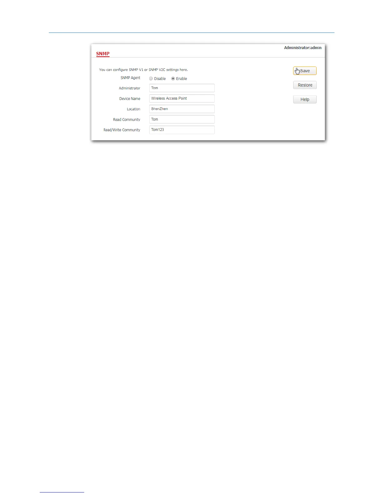After the configuration, the NMS can connect to the SNMP agent of the AP and can query and set some
