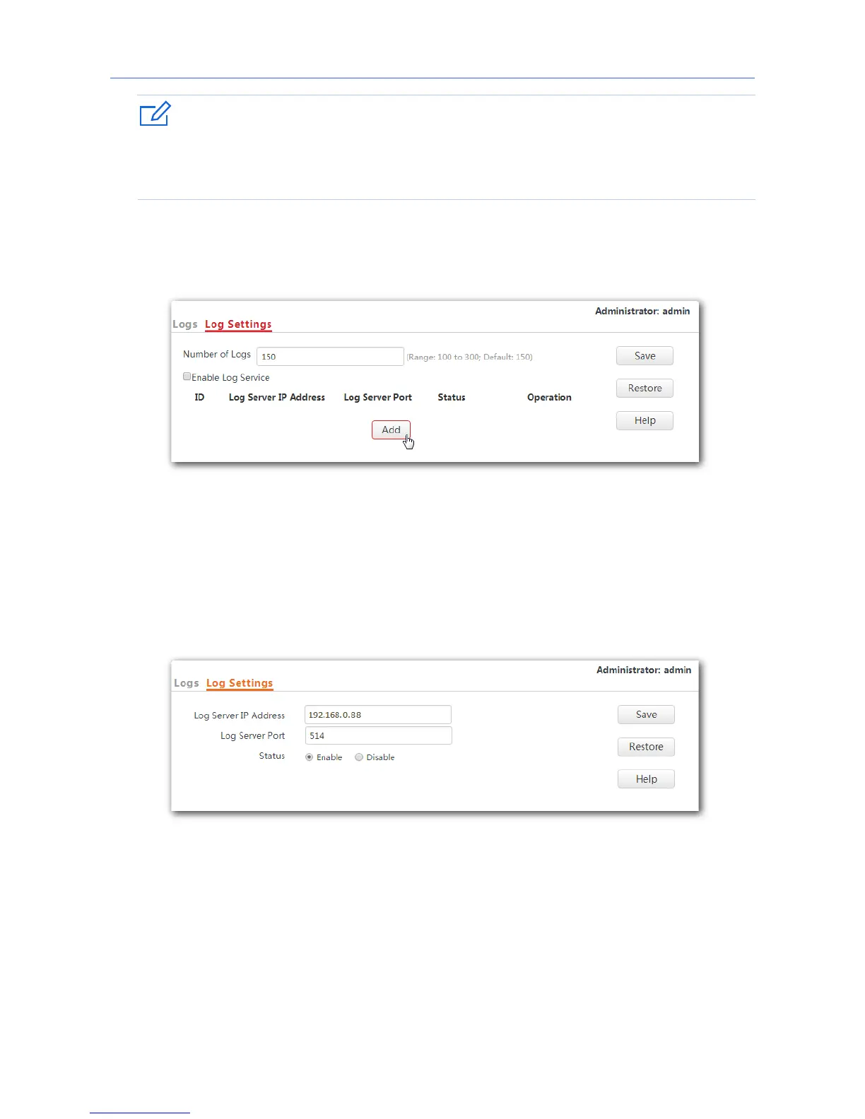 − Log Server Port: Enter the log server’s UDP port number used to send and receive