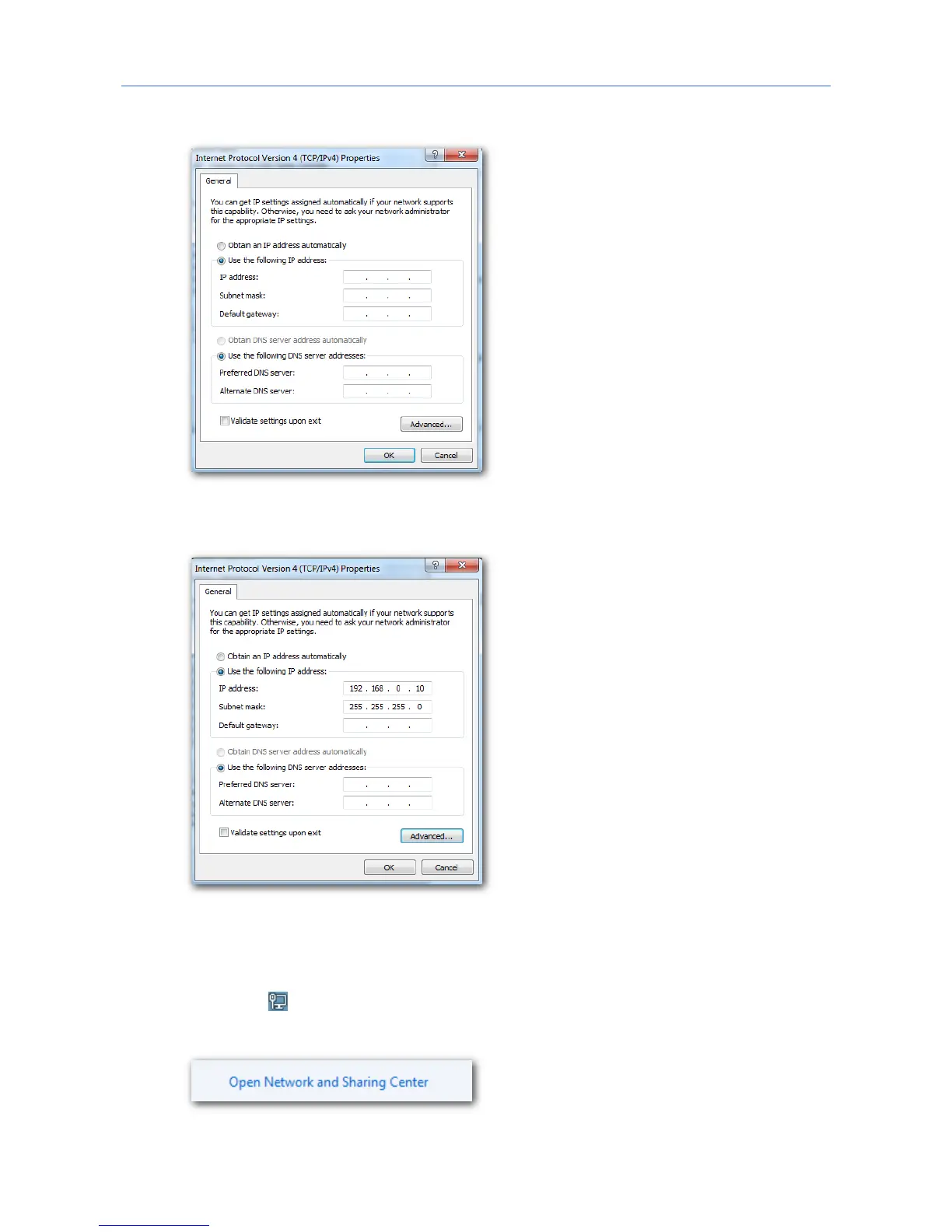 192.168.0.10 and 255.255.255.0 in this example, and click OK.