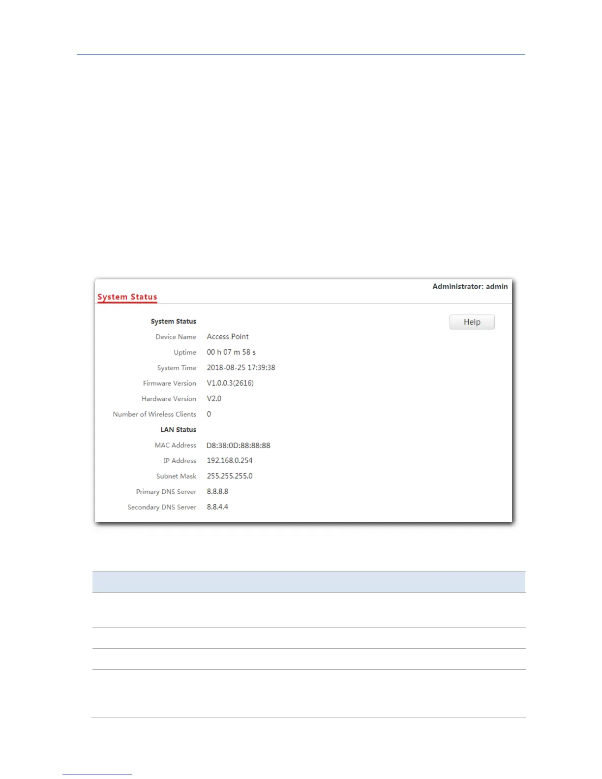 This page displays the system status and LAN port status of the AP. To access the page, click