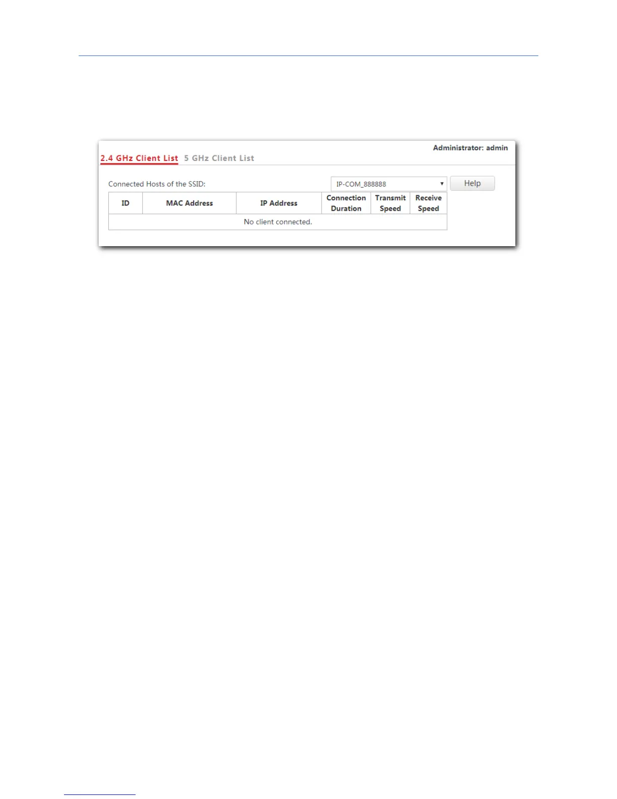 This page displays information about the wireless devices connected to AP’s WiFi networks.