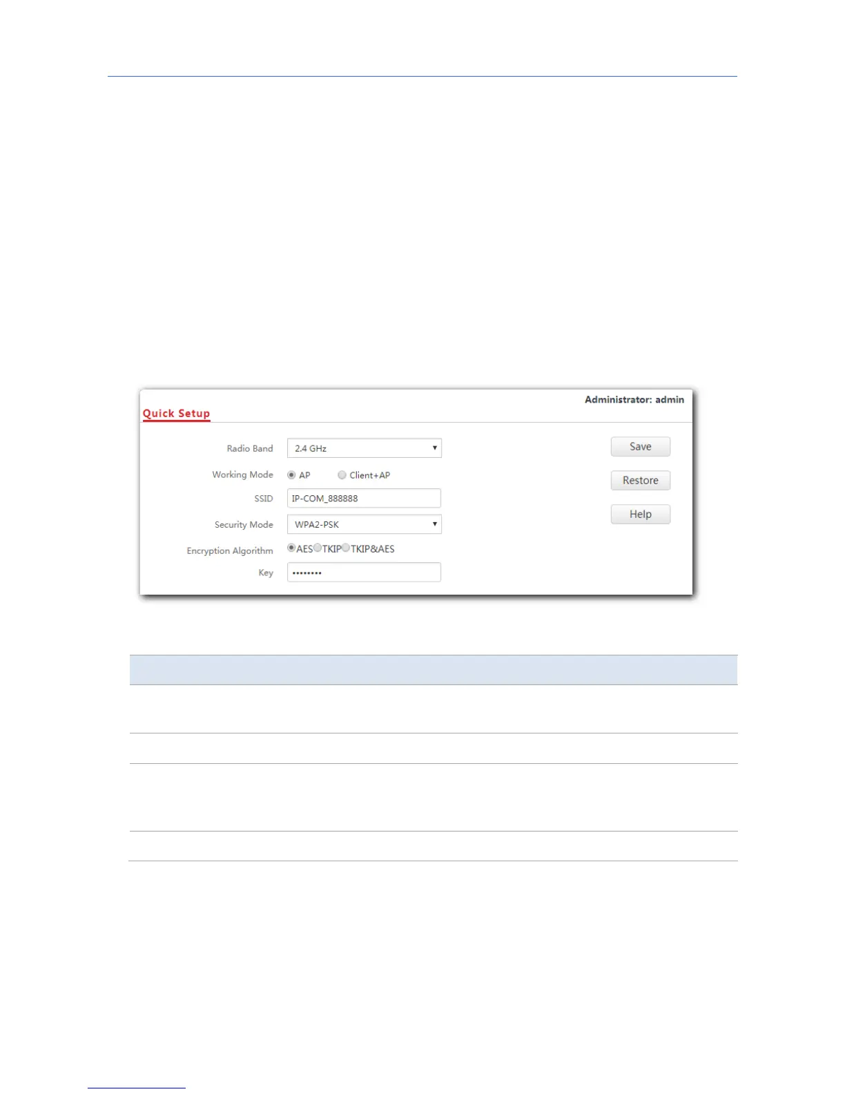 Key It specifies the WiFi password you set for your AP’s WiFi network.