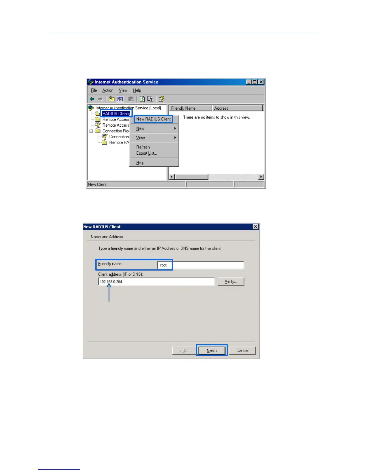 Service, right-click RADIUS Clients, and choose New RADIUS Client.