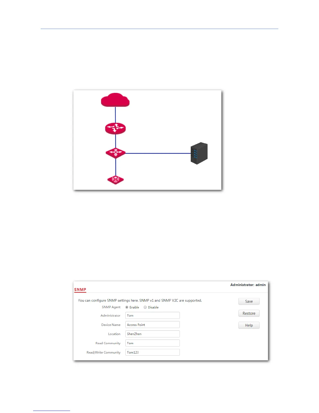 Assume that the administrator name is Tom, read community is Tom, and read/write