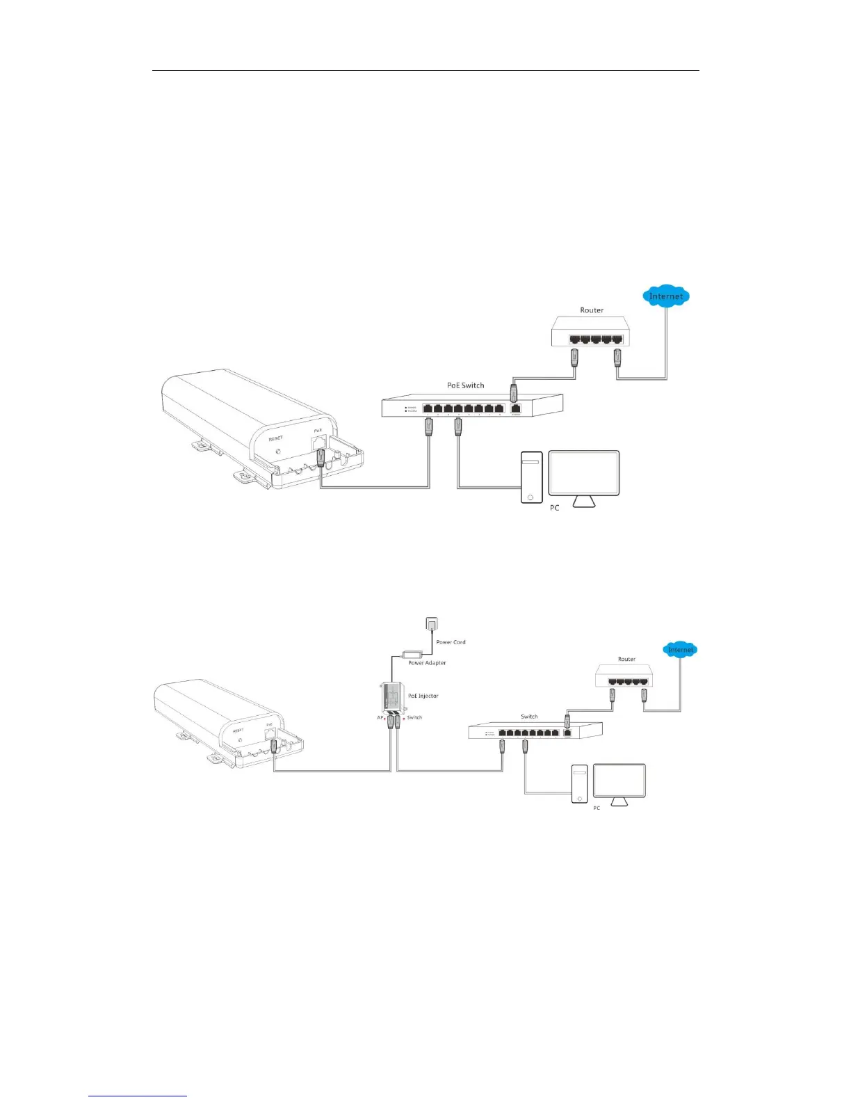 ❷ Connect your PC or other Ethernet devices to the PoE switch with Ethernet cables.