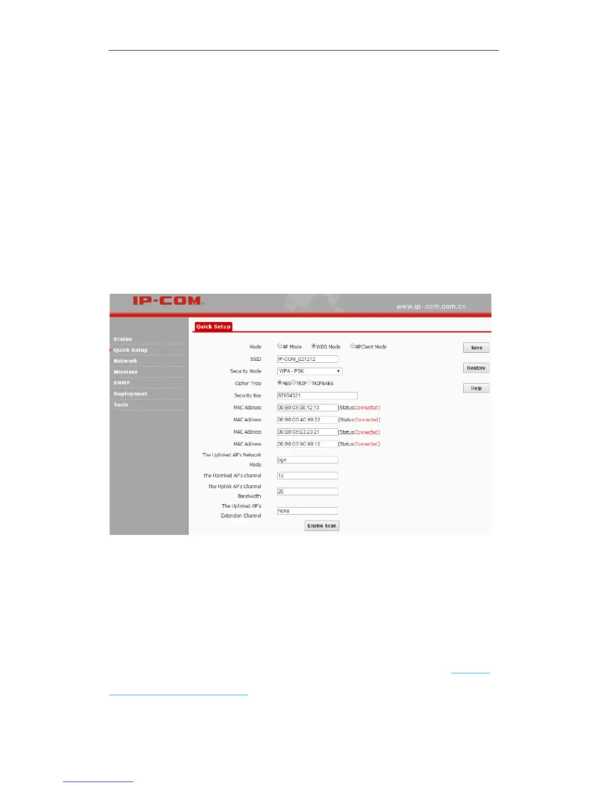 ❶ Click Quick Setup, select WDS Mode and click Enable Scan.