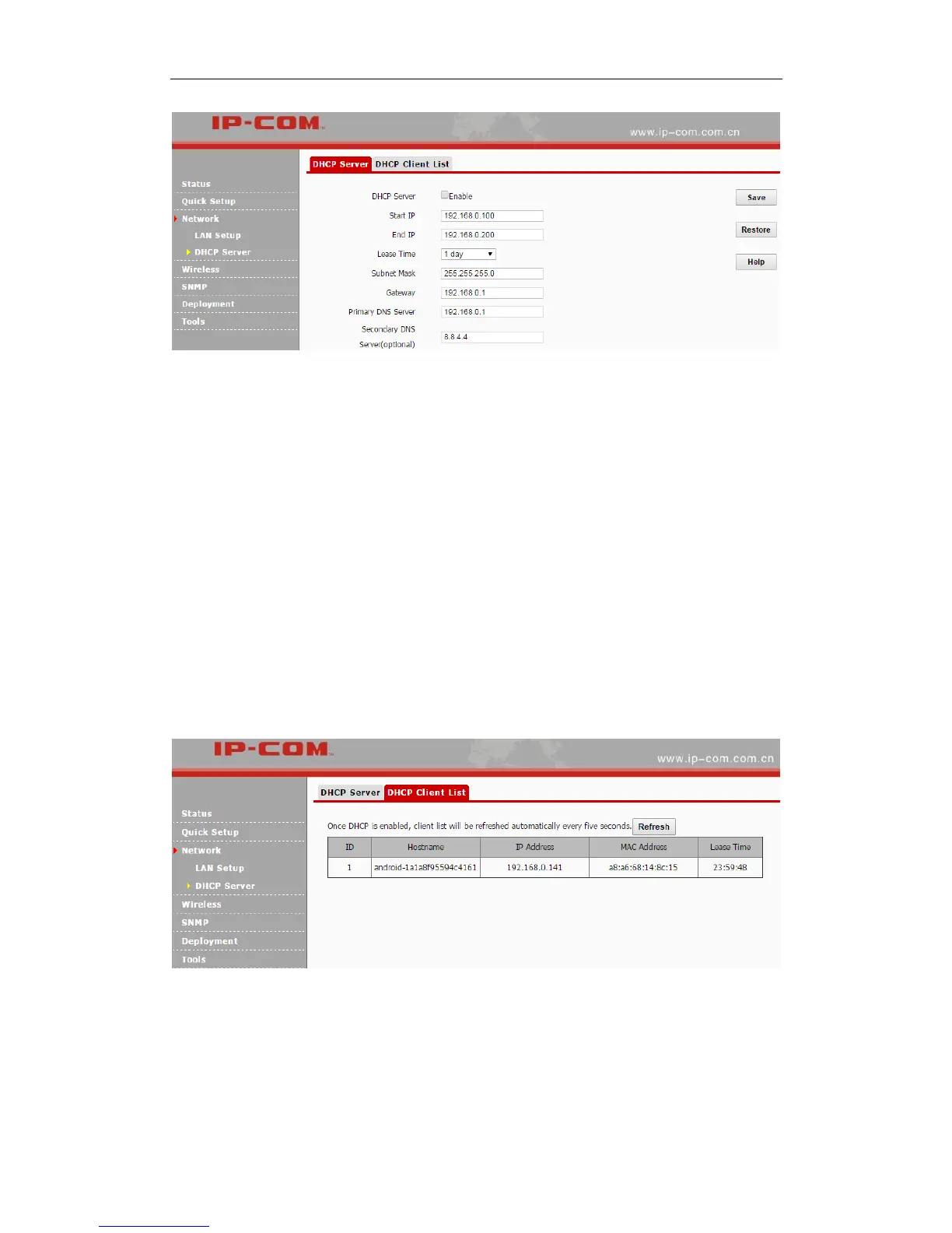 Click Network > DHCP Server > DHCP Client List to view DHCP clients information.
